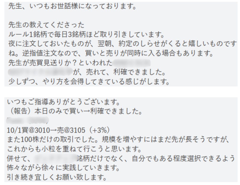 中には「損切り」の報告にもあるように、損失を適切に管理しトータルでの結果を冷静に分析することこそ、生涯にわたって使える技術の習得には欠かせません。