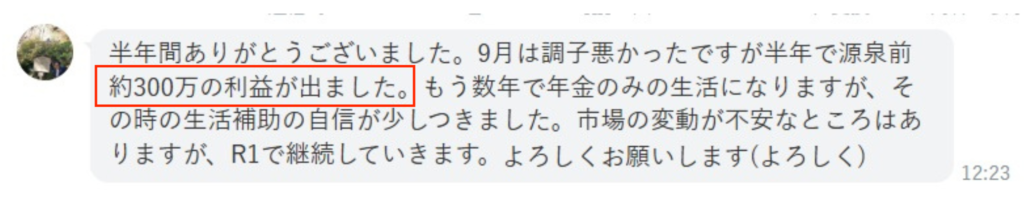こちらの受講生は300万円の利確に成功しました。